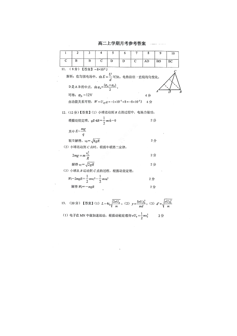 吉林省长春市东北师范大学附属中学2023-2024学年高二上学期第一次月考物理答案