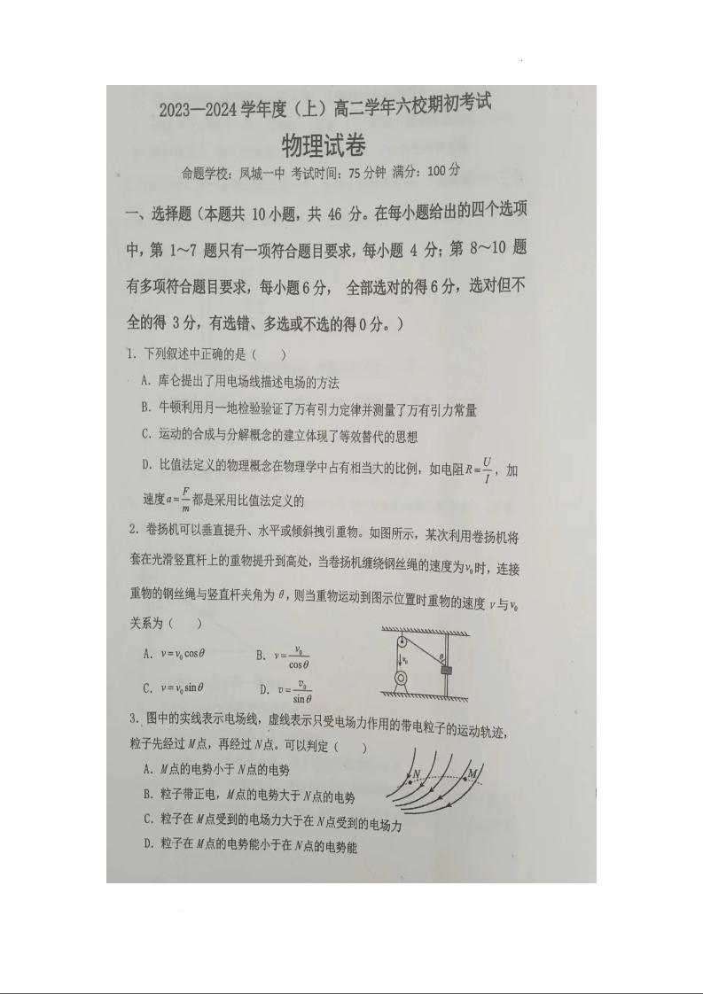 辽宁省六校协作体2023-2024学年高二上学期开学考试物理