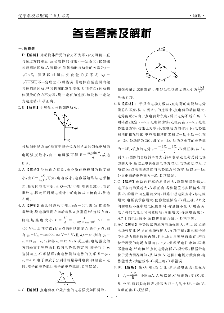 辽宁省名校联盟2023-2024学年高二上学期9月联合考试物理答案