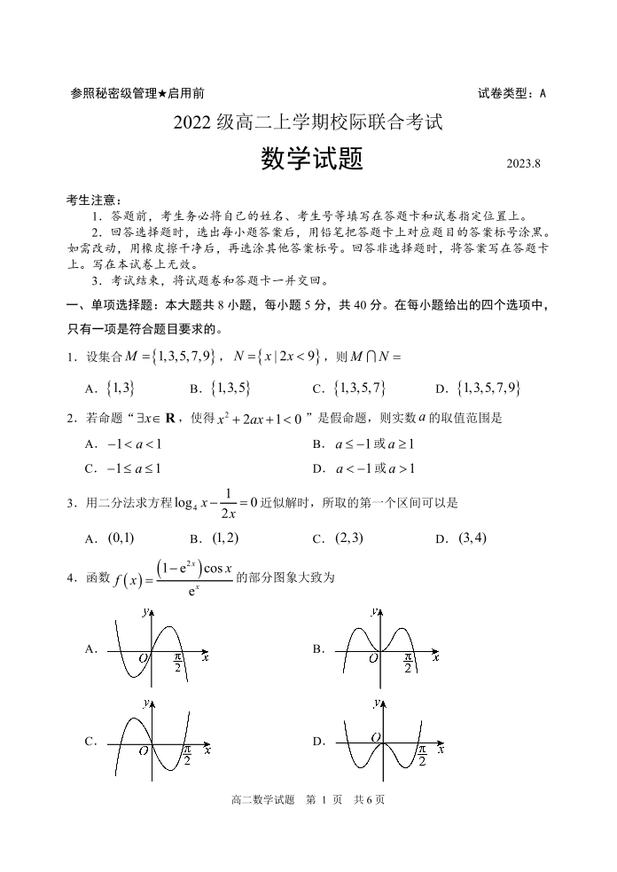 山东省日照市2023-2024学年高二上学期开学考试数学