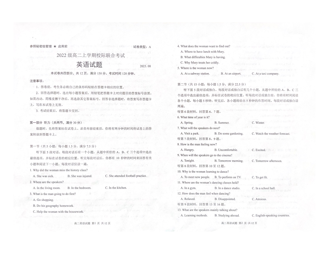 山东省日照市2023-2024学年高二上学期开学考试英语