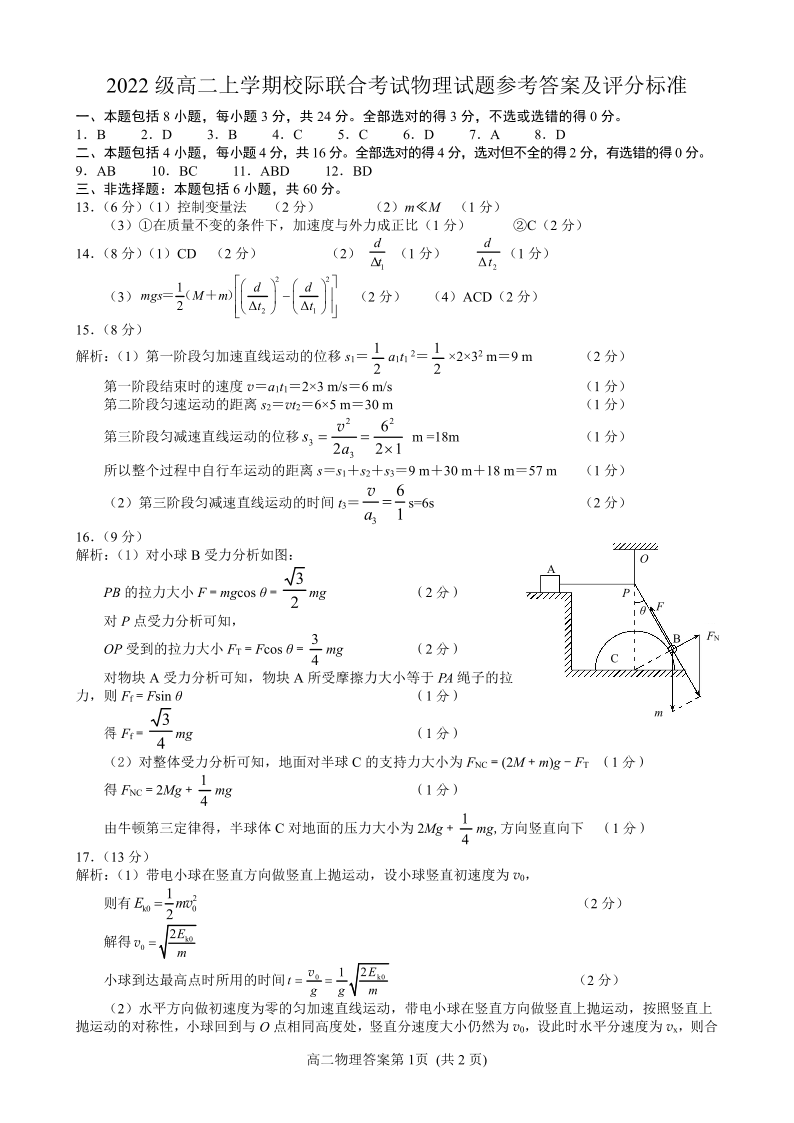 山东省日照市2023-2024学年高二上学期开学考试物理答案