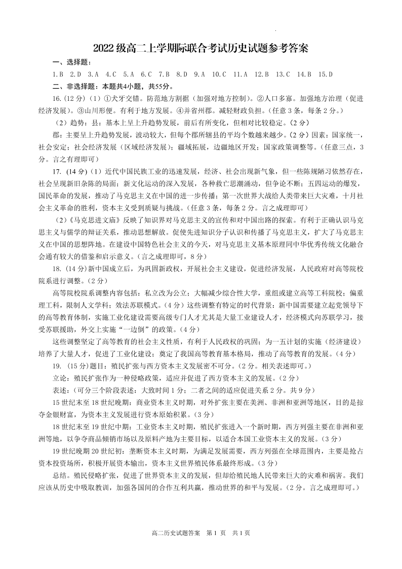 山东省日照市2023-2024学年高二上学期开学考试历史答案