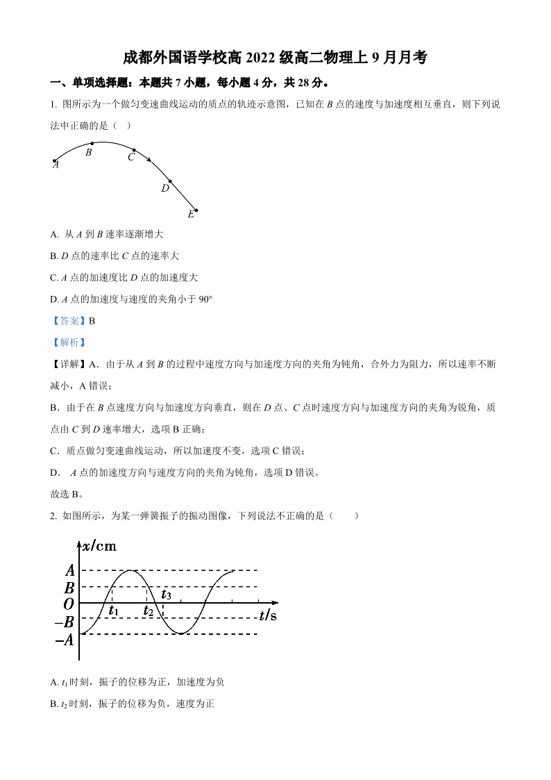 四川省成都外国语学校2023-2024学年高二上学期9月月考物理答案