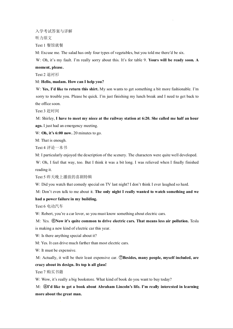 四川省绵阳南山中学2023-2024学年高二上学期开学考试英语答案