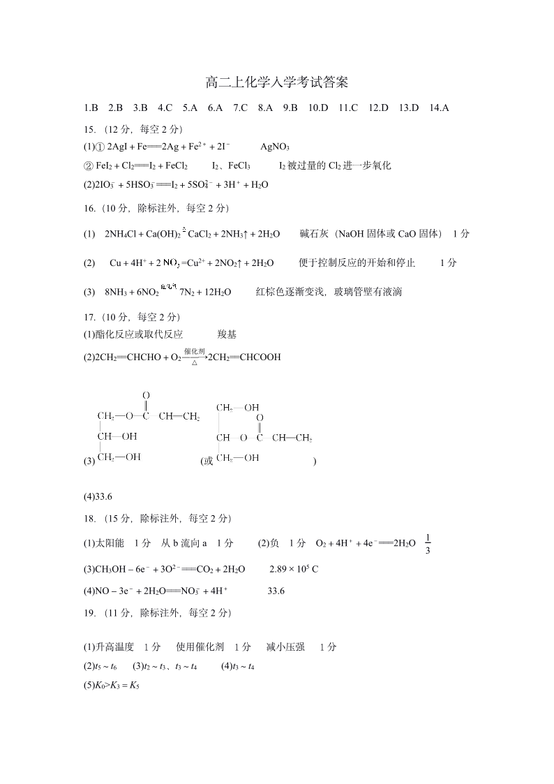 四川省绵阳南山中学2023-2024学年高二上学期入学考试化学答案