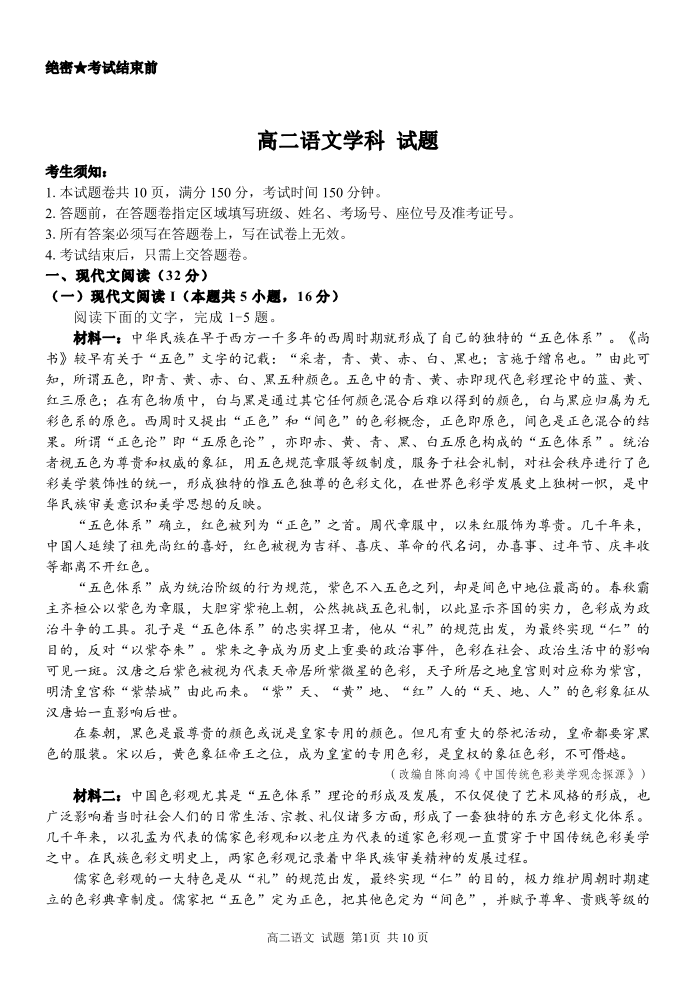 浙江省七彩阳光高考联盟高二上学期返校联考语文
