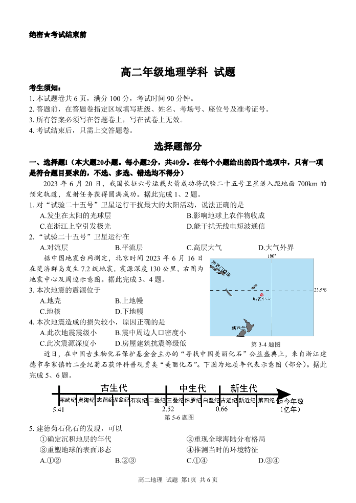 浙江省七彩阳光高考联盟高二上学期返校联考地理