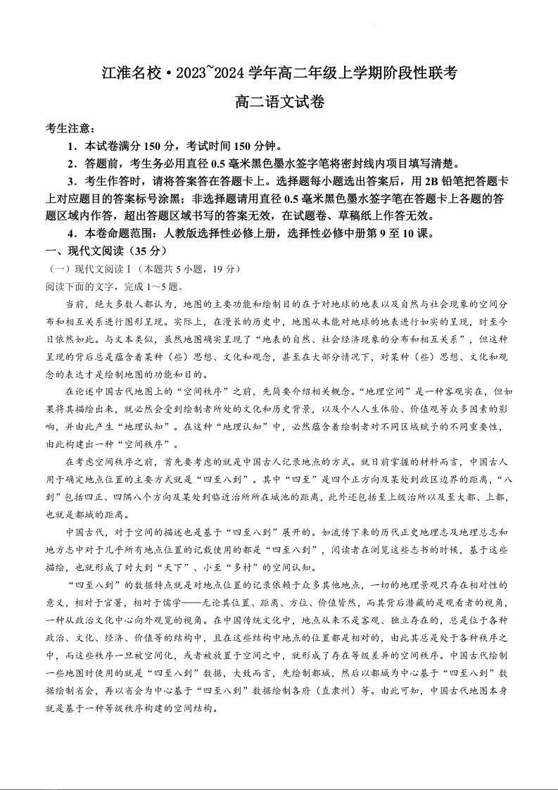 安徽省江淮名校2023-2024学年高二上学期12月阶段性联考语文+答案