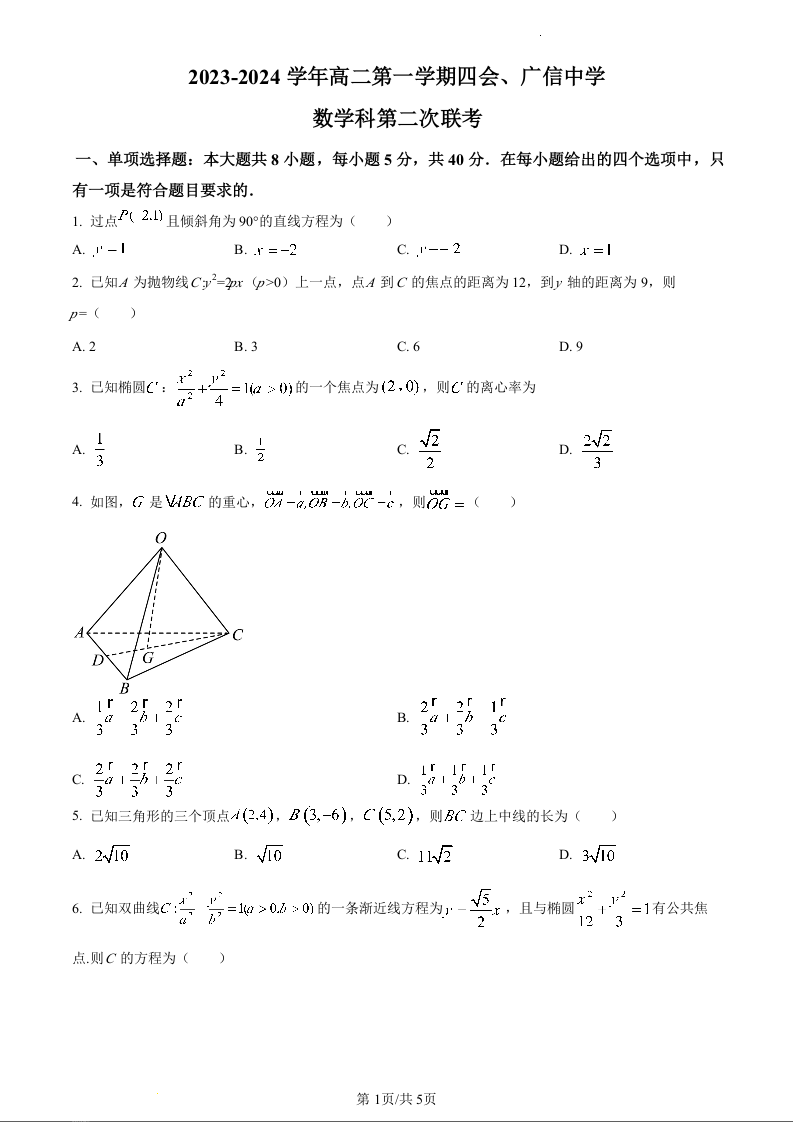 广东省四会中学、广信中学2023-2024学年高二上学期第二次月考数学(原卷版)