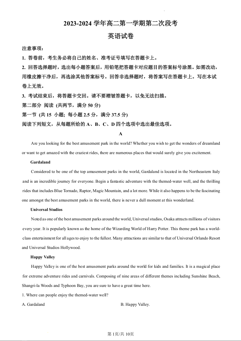 广东省四会中学、广信中学2023-2024学年高二上学期第二次月考英语(原卷版)
