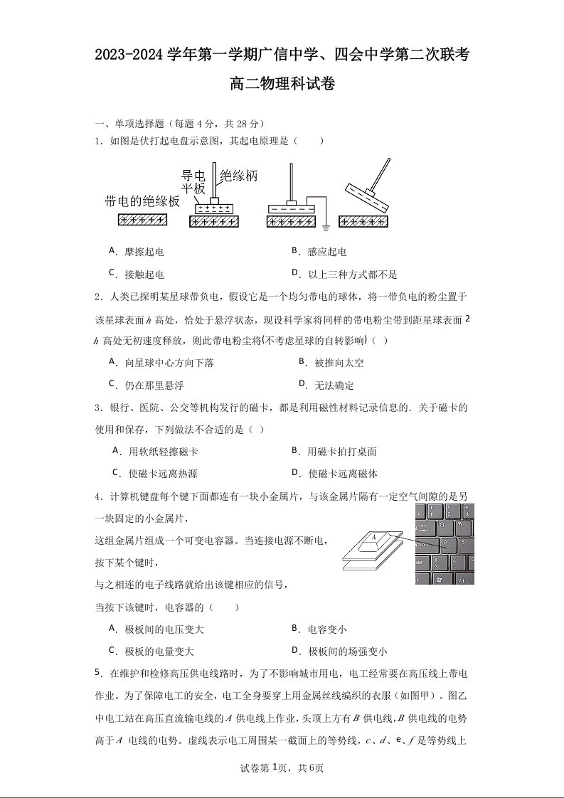 广东省四会中学、广信中学2023-2024学年高二上学期第二次月考物理+答案