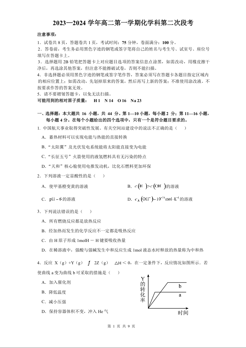广东省四会中学、广信中学2023-2024学年高二上学期第二次月考化学