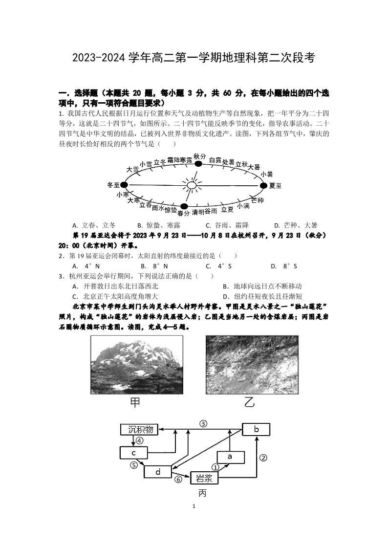 广东省四会中学、广信中学2023-2024学年高二上学期第二次月考地理