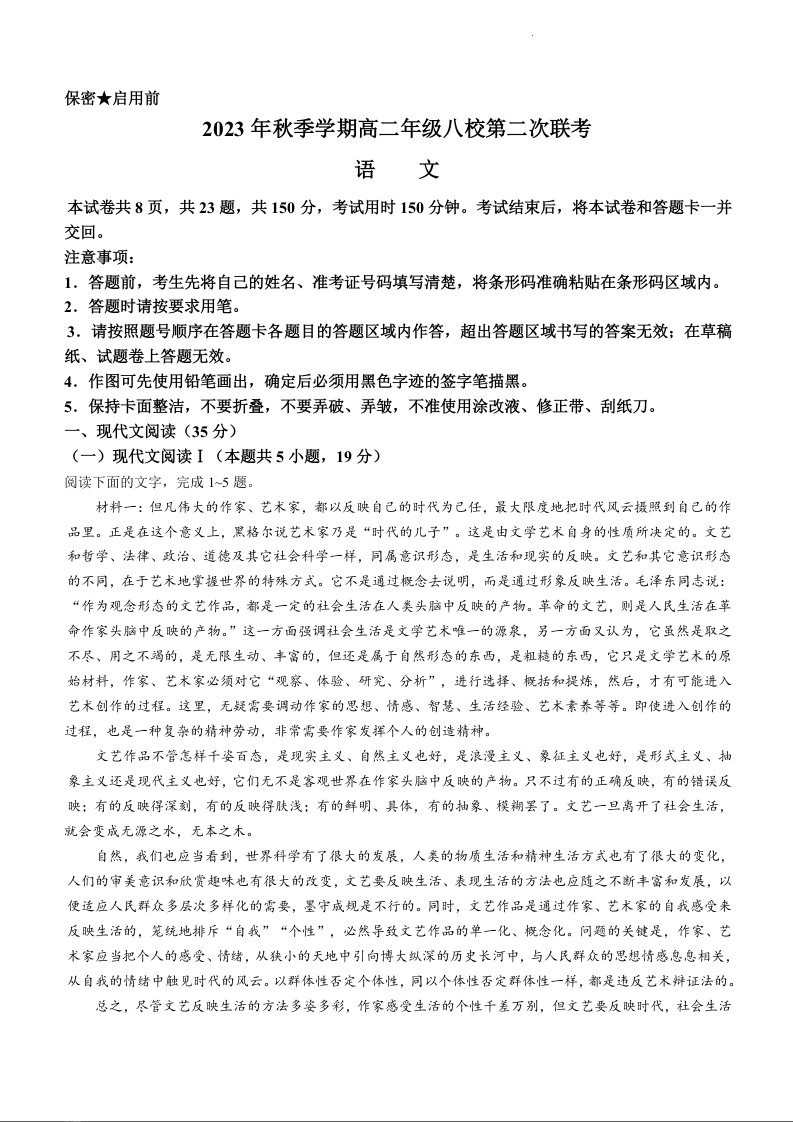 广西河池市八校2023-2024学年高二上学期第二次联考(12月)语文+答案