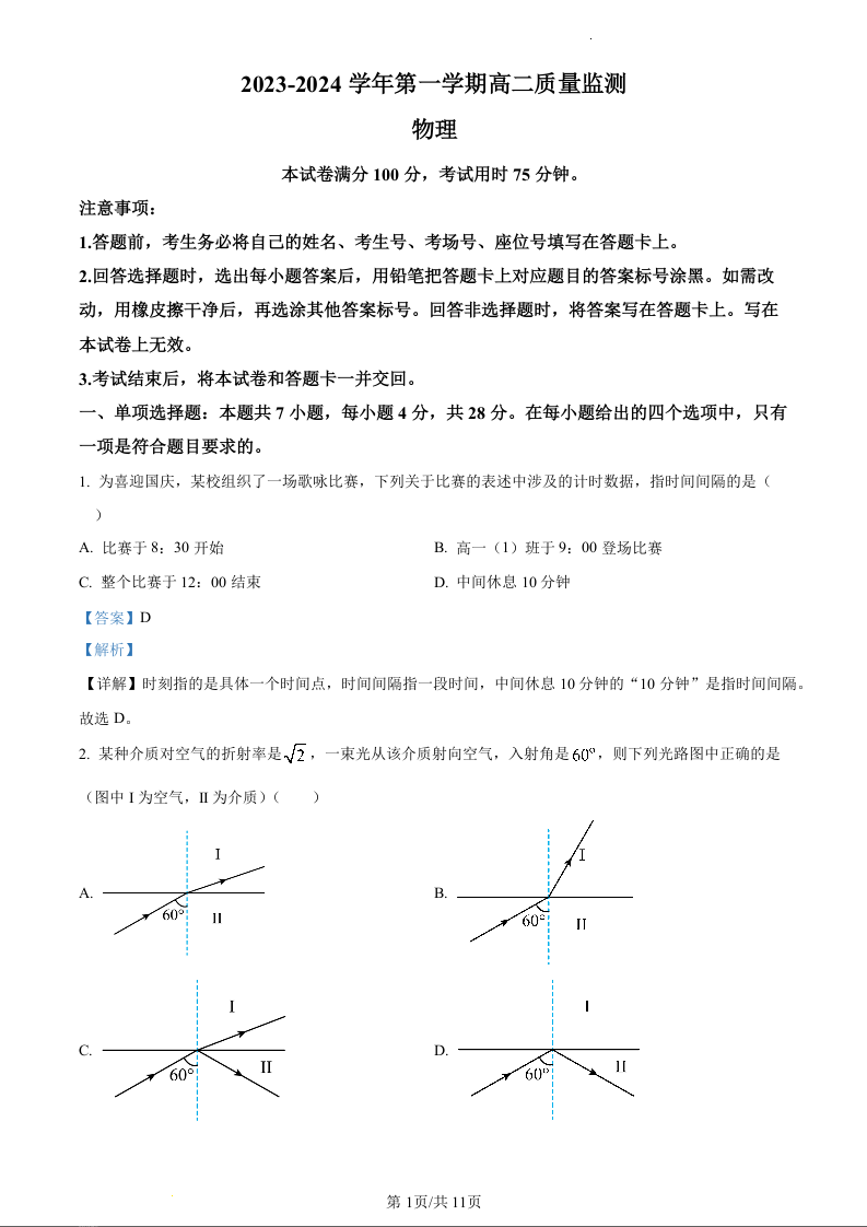 贵州省六盘水市水城区2023-2024学年高二上学期12月月考物理(精品解析版)