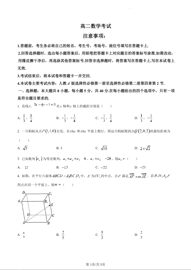 河北省保定市部分学校2023-2024学年高二上学期期中考试数学(原卷版)