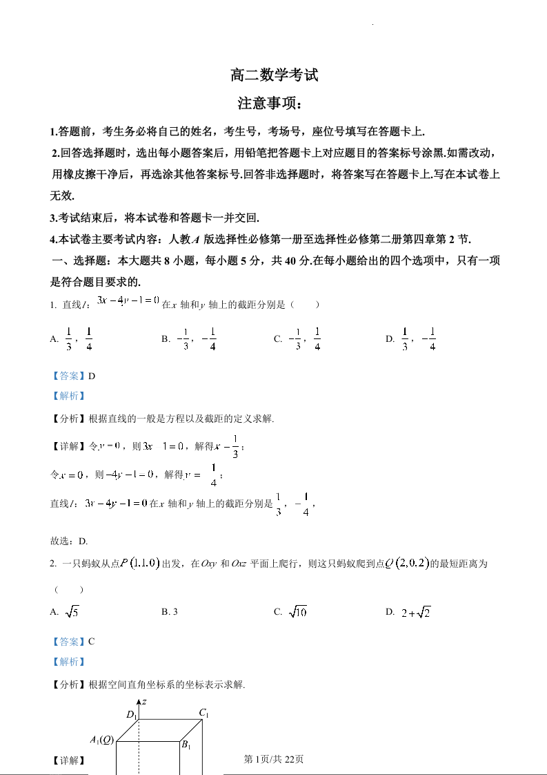 河北省保定市部分学校2023-2024学年高二上学期期中考试数学(精品解析版)