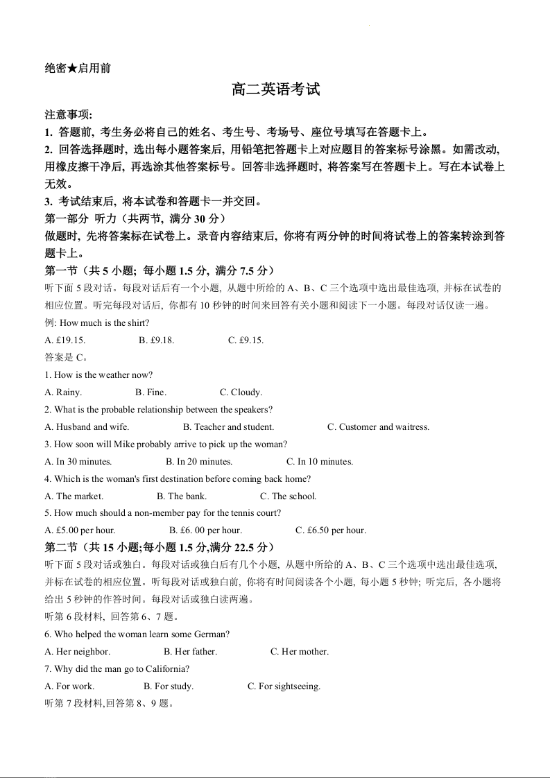 河北省保定市部分学校2023-2024学年高二上学期期中考试英语+答案