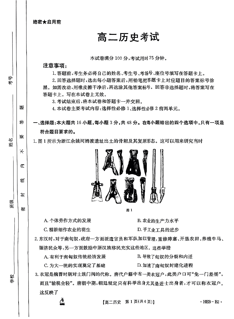 河北省保定市部分学校2023-2024学年高二上学期期中考试历史