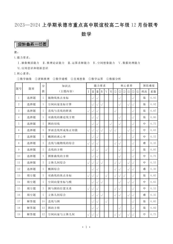 河北省承德市重点高中联谊校2023-2024学年高二上学期12月联考数学答案