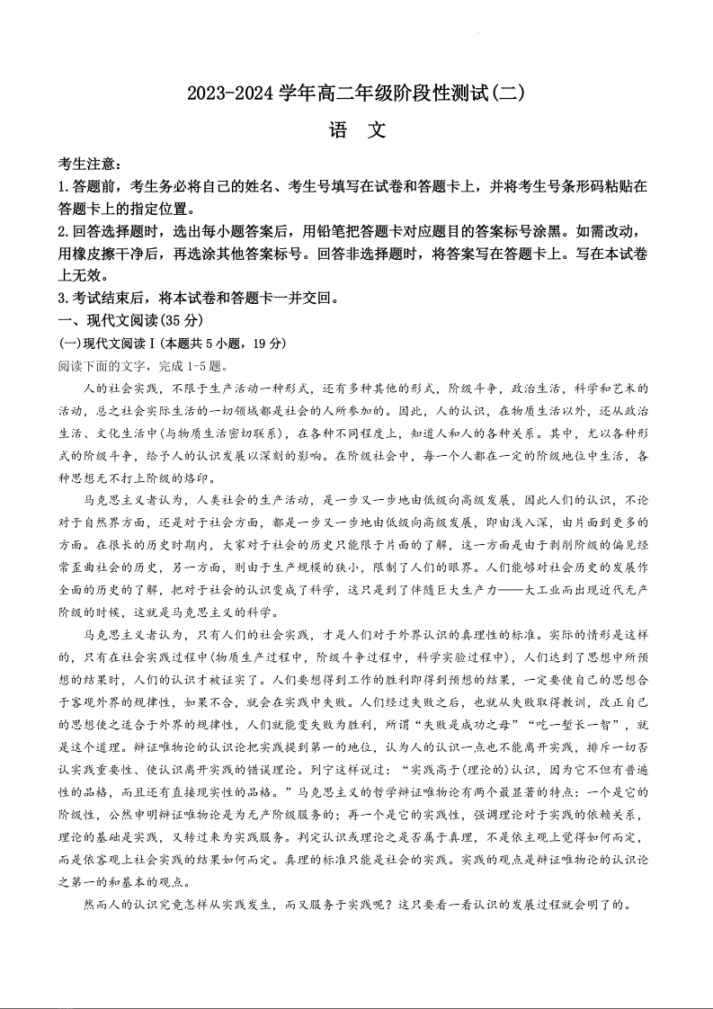 河南省濮阳市2023-2024学年高二上学期12月联考语文+答案