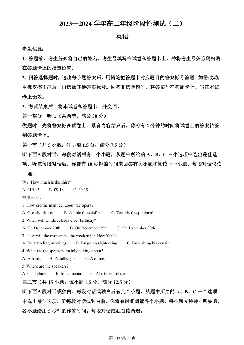 河南省濮阳市2023-2024学年高二上学期12月联考英语(原卷版)