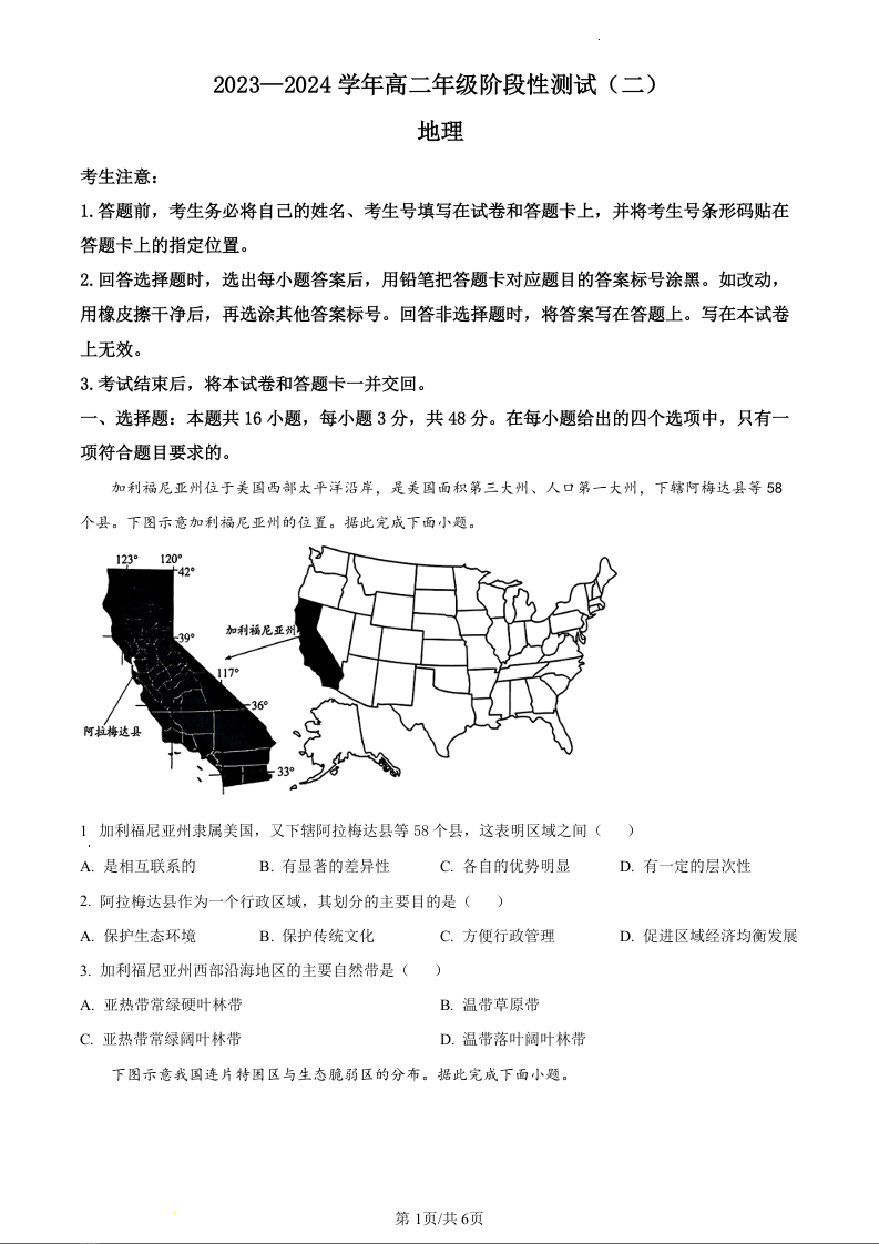 河南省濮阳市2023-2024学年高二上学期12月联考地理(原卷版)