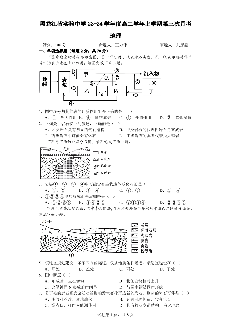 黑龙江省实验中学2023-2024学年高二上学期12月月考地理+答案
