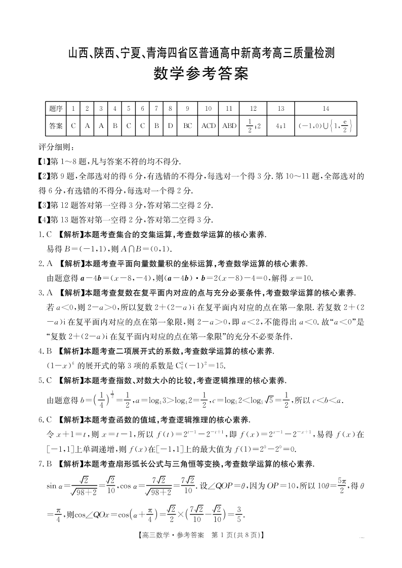 山西、陕西、宁夏、青海四省区2024-2025学年下学期4月高三联考检测数学数学答案
