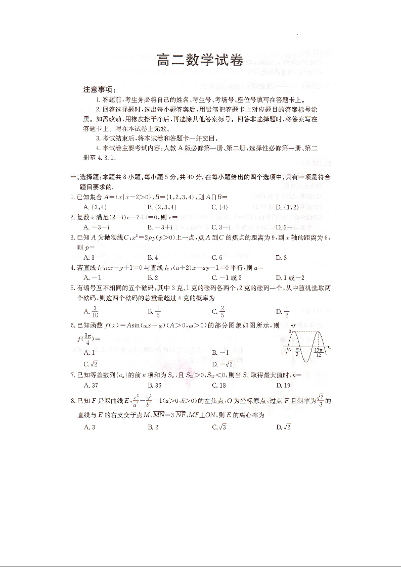 湖南省百校大联考2023-2024学年高二上学期12月月考数学