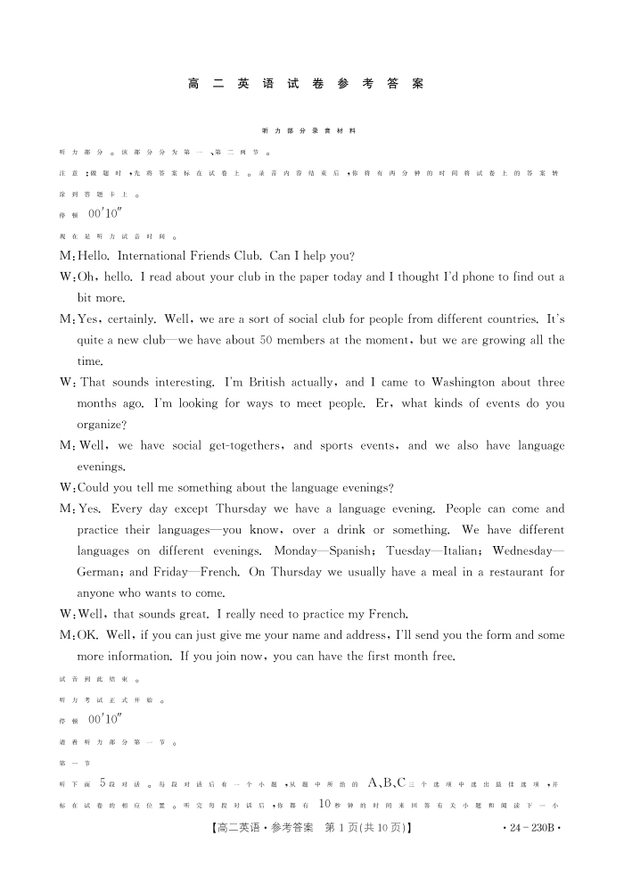 湖南省百校大联考2023-2024学年高二上学期12月月考英语答案