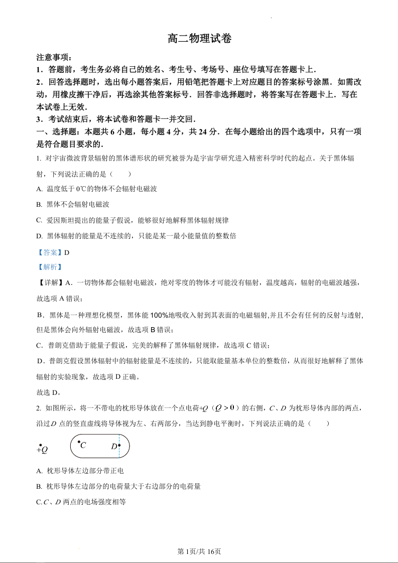 湖南省百校大联考2023-2024学年高二上学期12月月考物理(精品解析版)