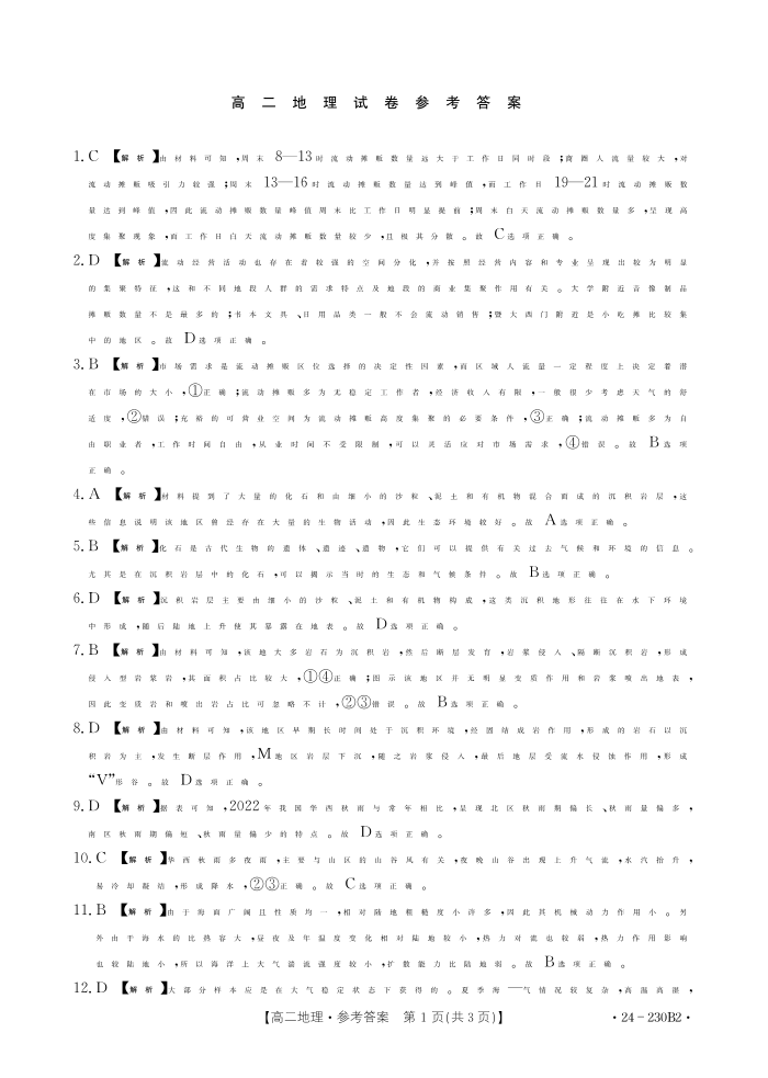 湖南省百校大联考2023-2024学年高二上学期12月月考地理答案