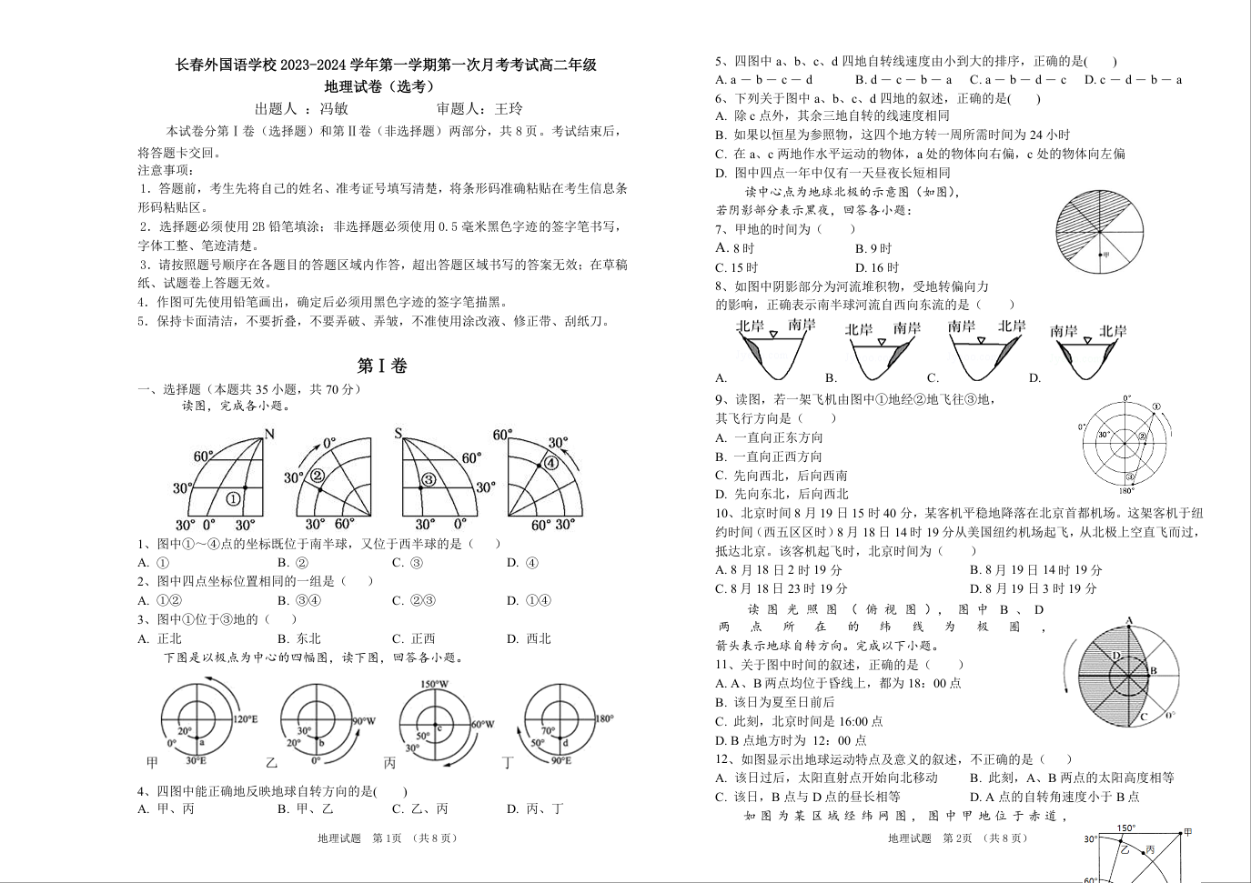 吉林省长春市长春外国语学校2023-2024学年高二上学期第二次月考地理+答案