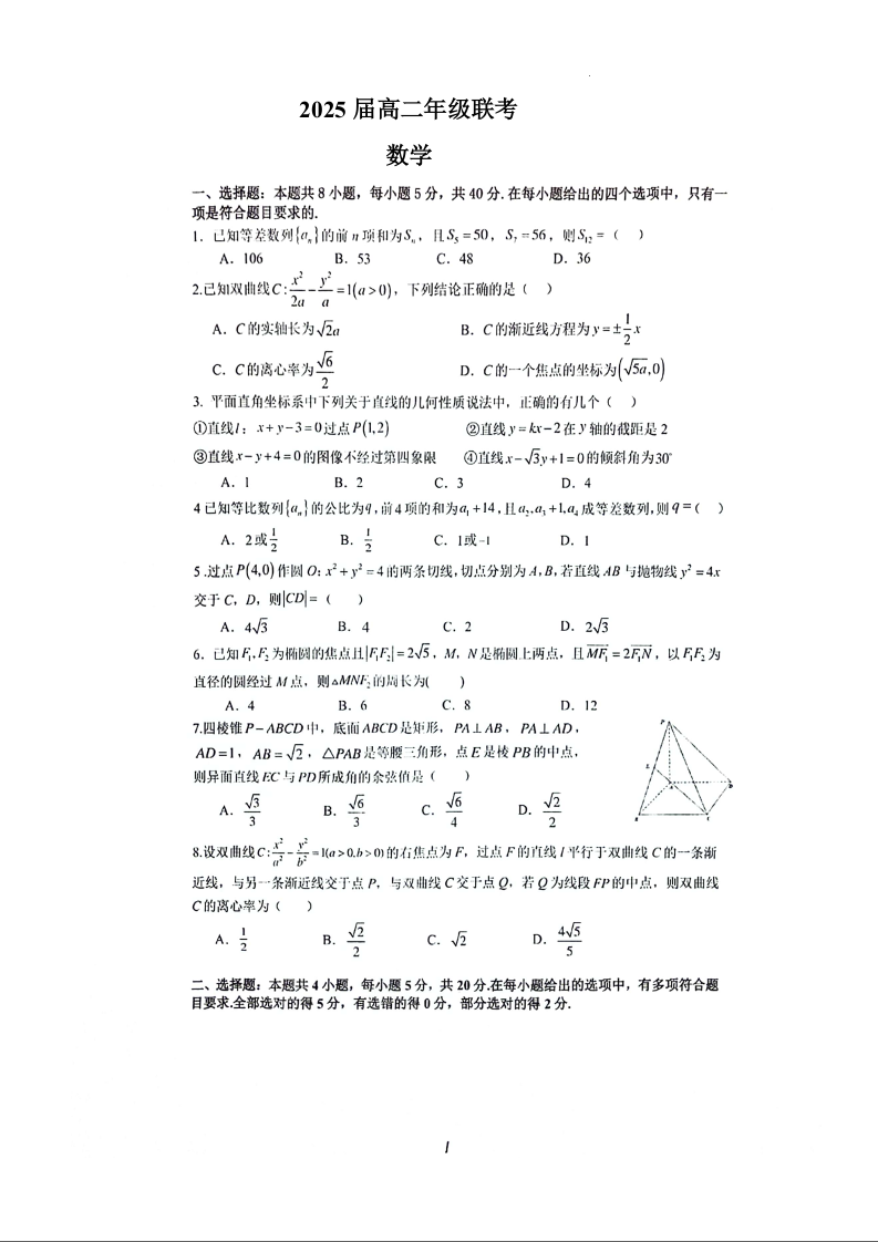 江苏省苏南八校2023-2024学年高二上学期12月联考数学