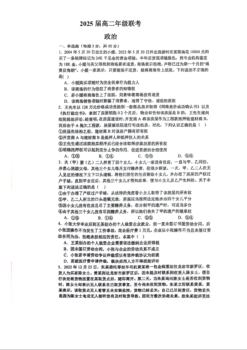 江苏省苏南八校2023-2024学年高二上学期12月联考政治