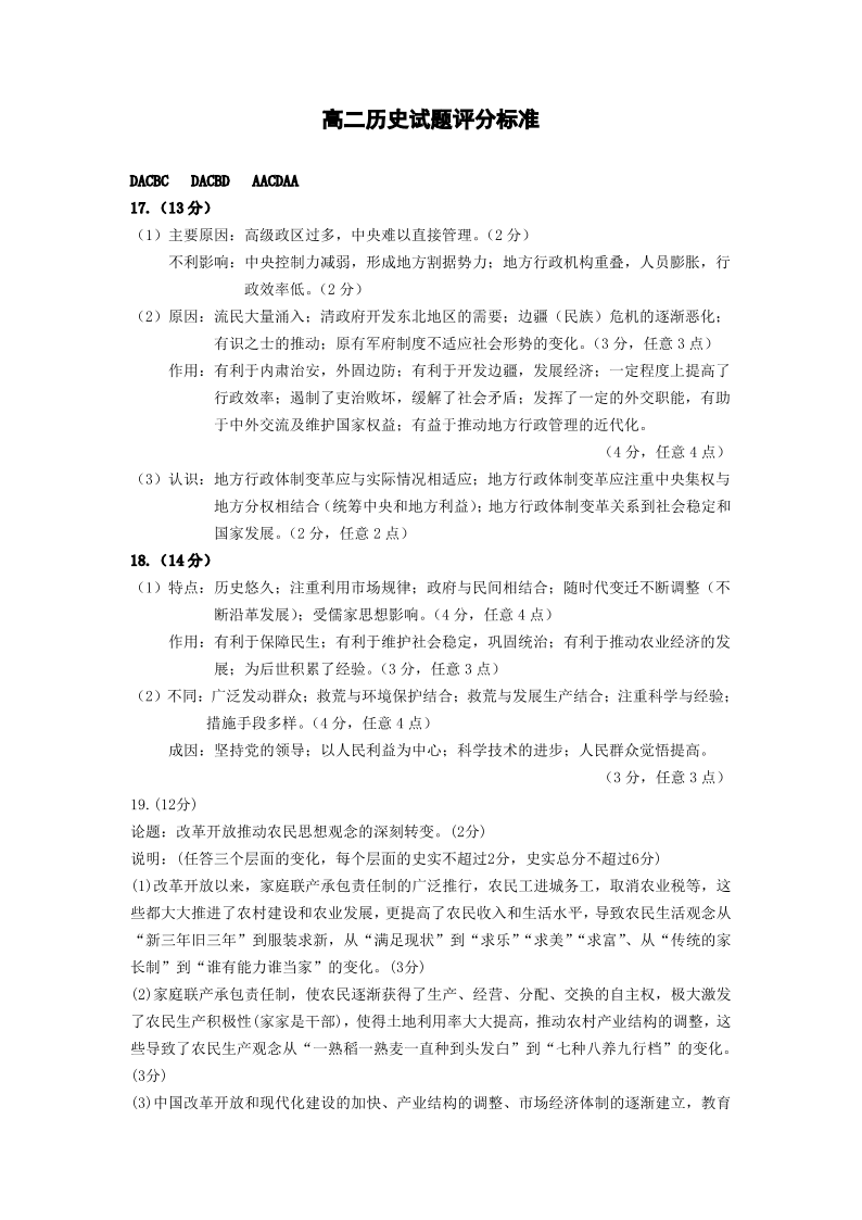 江苏省泰州市联盟五校2023-2024学年高二上学期期中考试历史答案