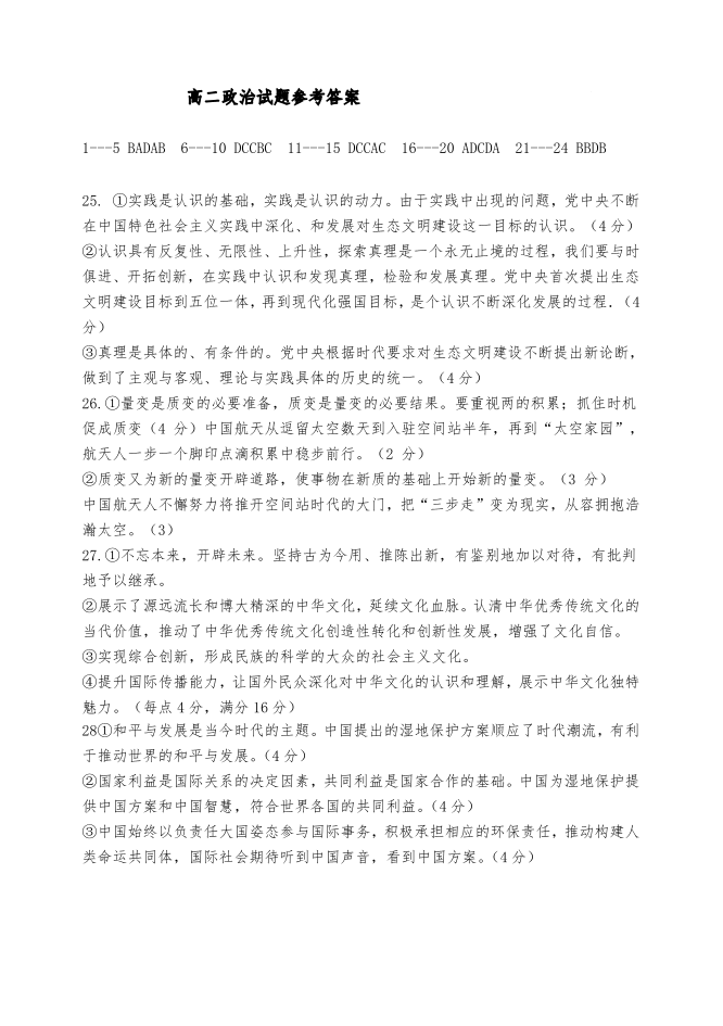 辽宁省六校协作体2023-2024学年高二上学期12月月考政治答案