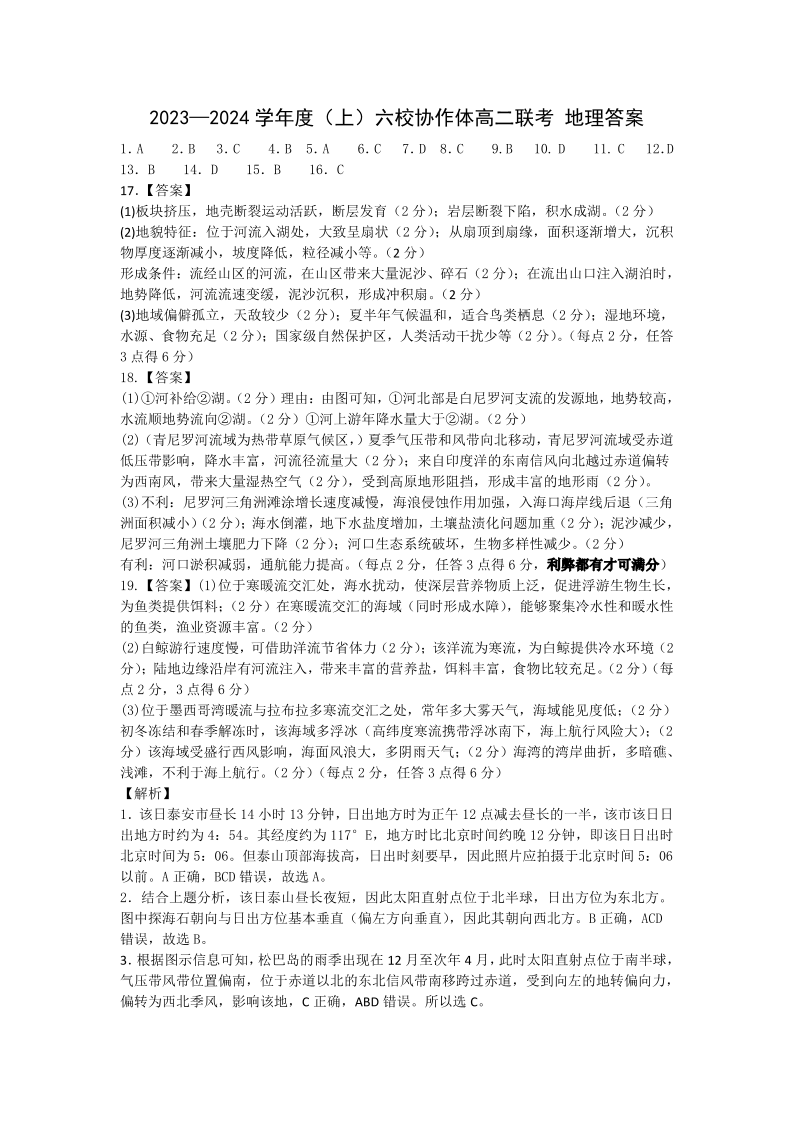 辽宁省六校协作体2023-2024学年高二上学期12月月考地理答案