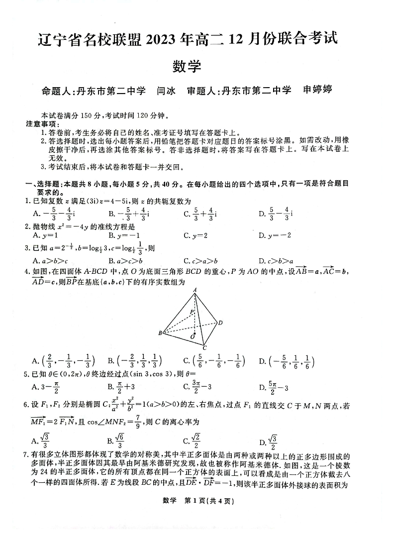 辽宁省名校联盟2023-2024学年高二上学期12月月考数学