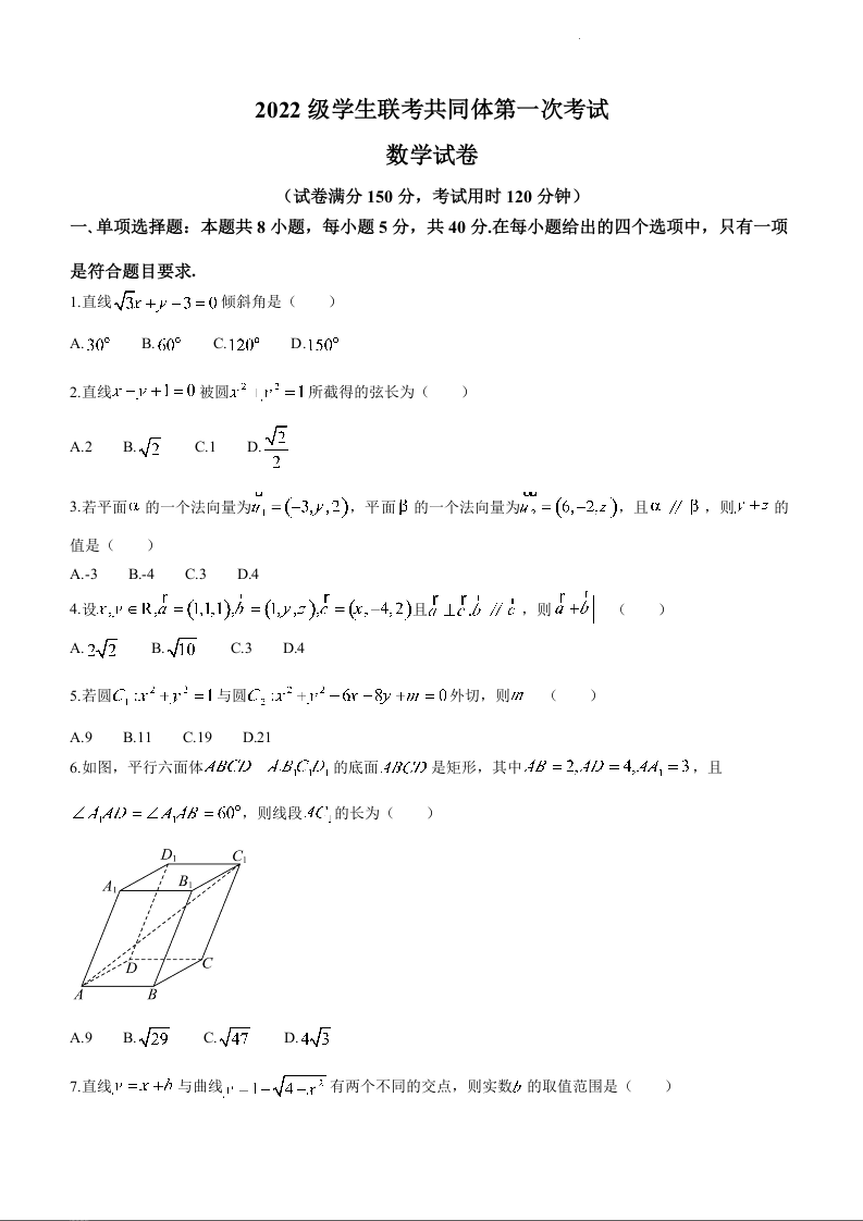 内蒙古自治区优质高中联考2023-2024学年高二上学期11月期中考试数学+答案