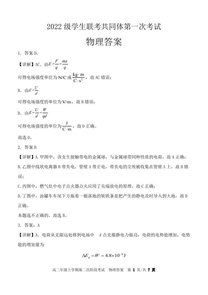 内蒙古自治区优质高中联考2023-2024学年高二上学期11月期中考试物理答案