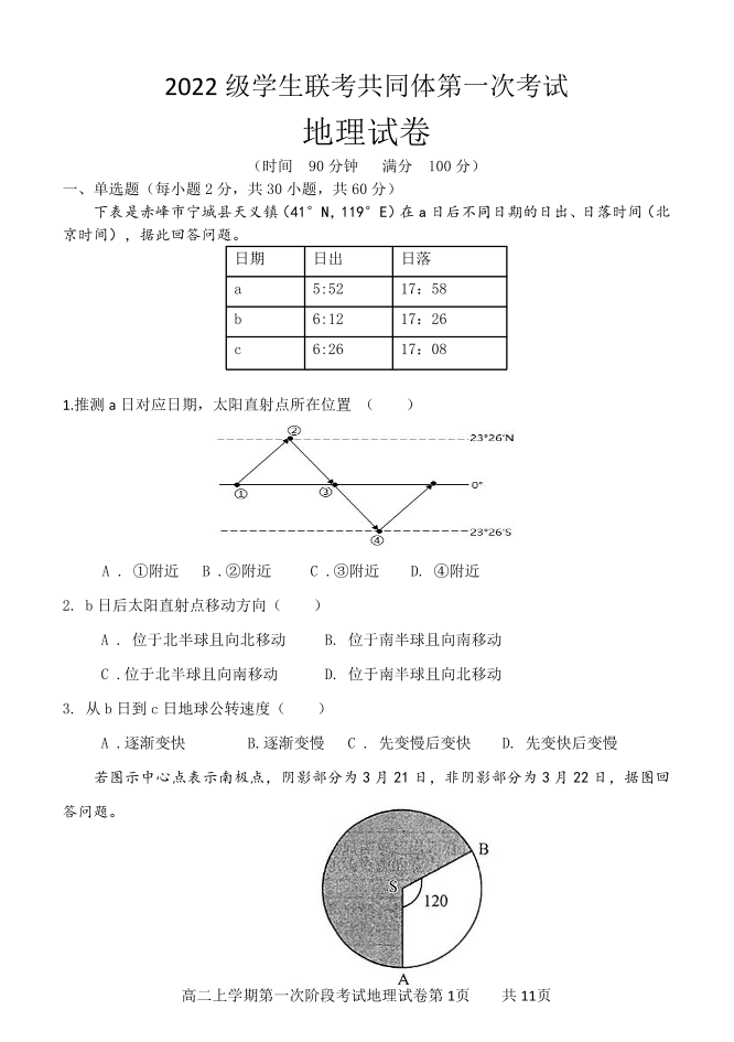内蒙古自治区优质高中联考2023-2024学年高二上学期11月期中考试地理