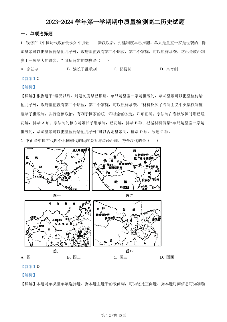山东省济宁市兖州区2023-2024学年高二上学期期中考试历史(精品解析版)