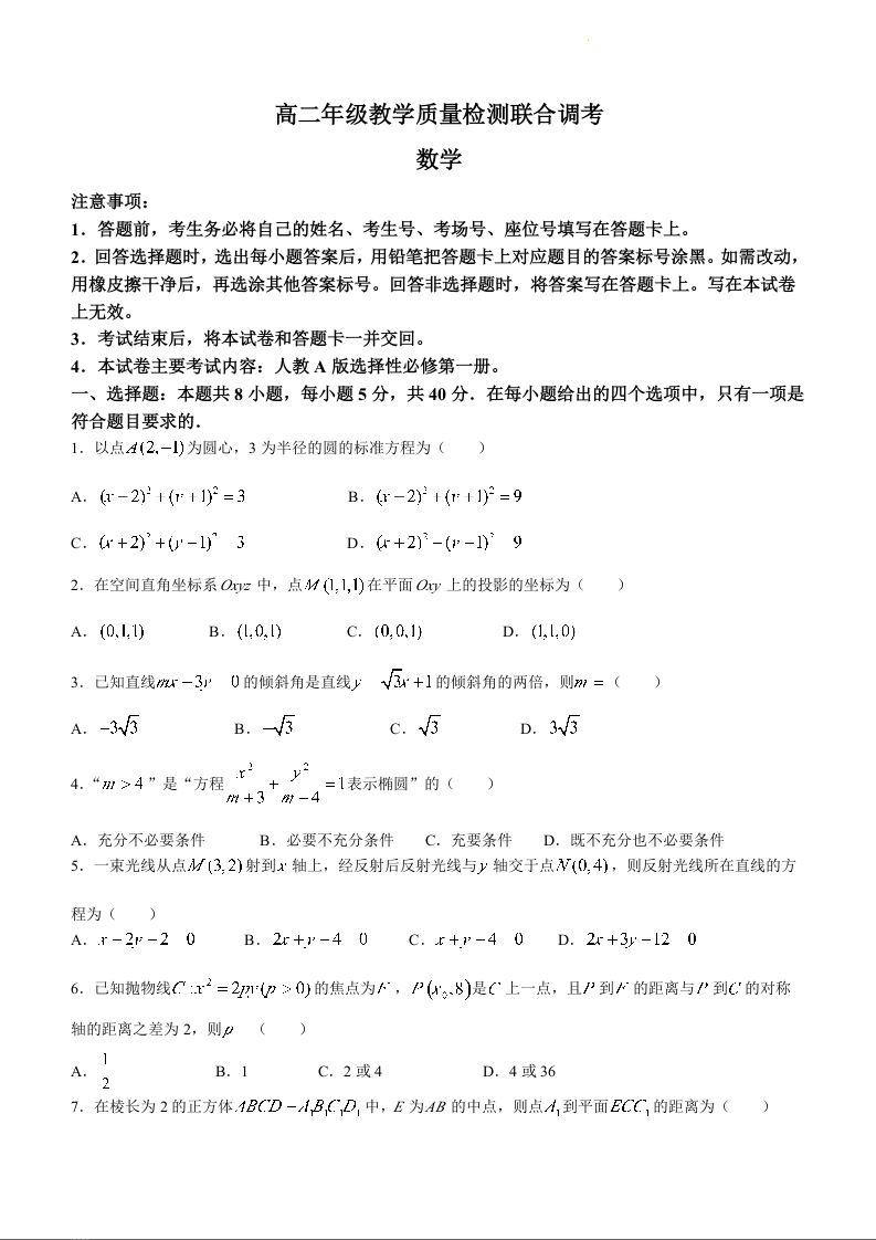 山东省省级联考2023-2024学年高二上学期12月月考数学