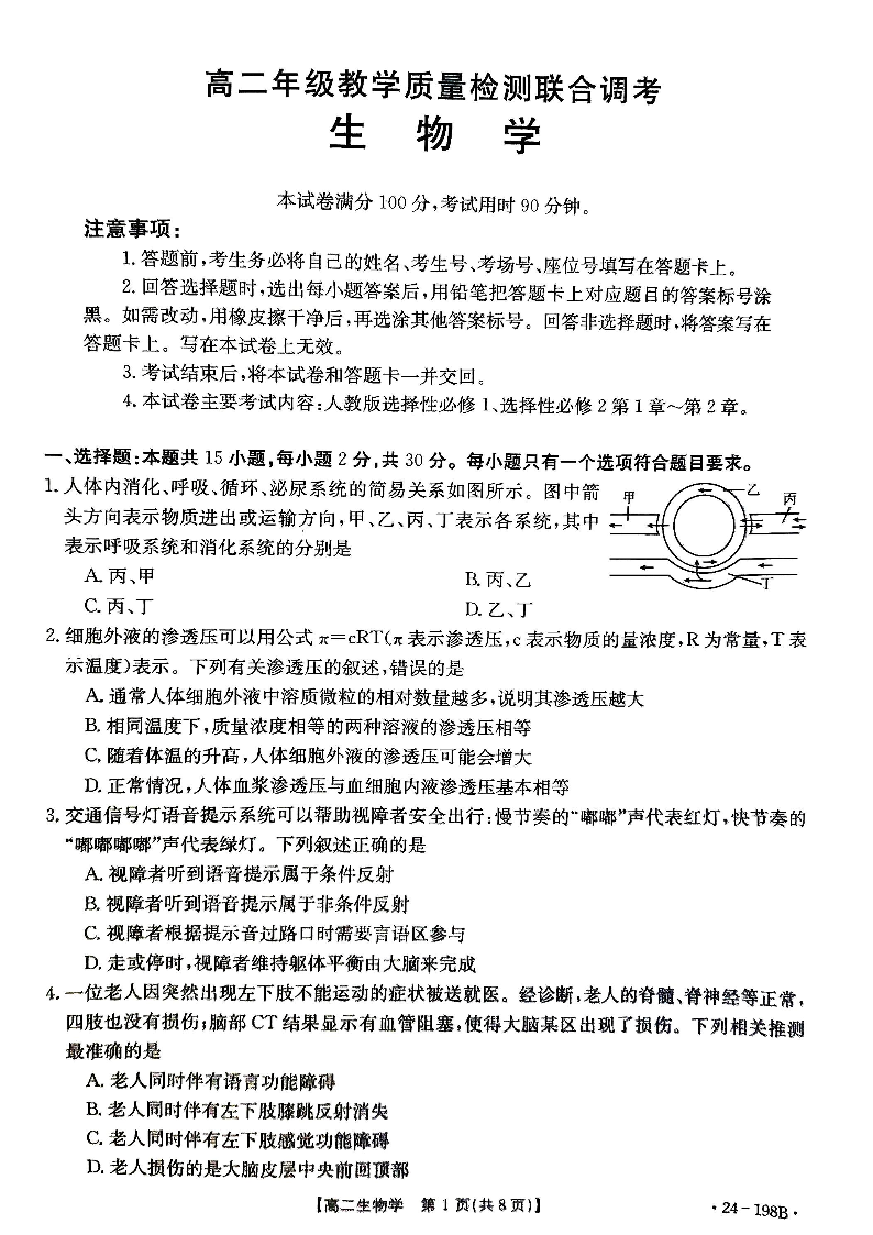 山东省省级联考2023-2024学年高二上学期12月月考生物