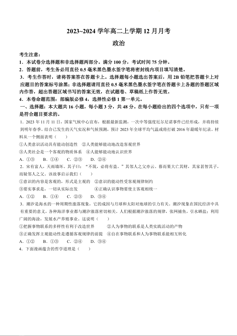 山西省吕梁市孝义市多校2023-2024学年高二上学期12月月考政治+答案