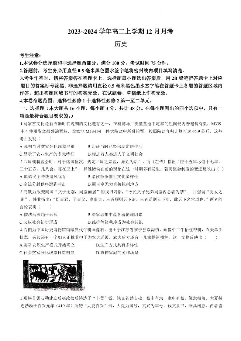 山西省吕梁市孝义市多校2023-2024学年高二上学期12月月考历史+答案