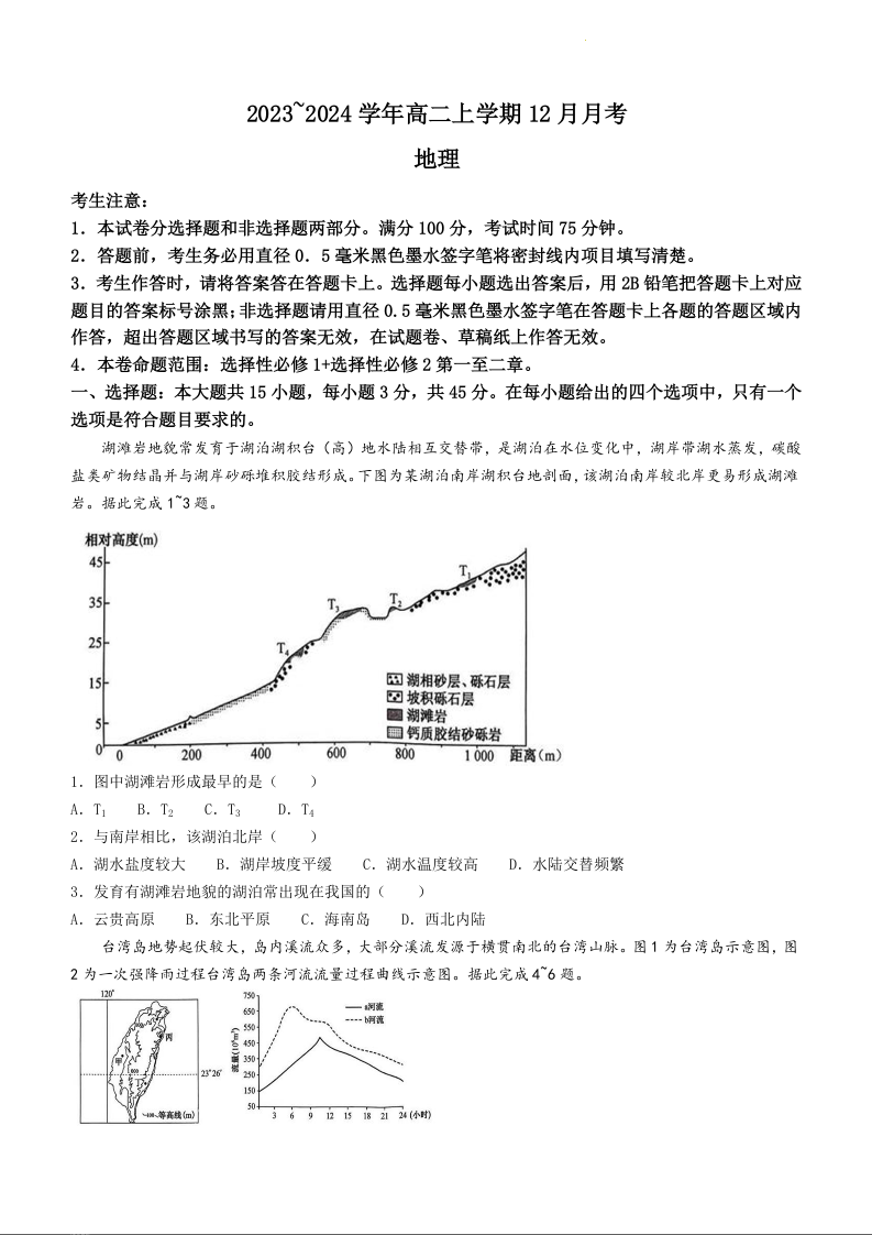山西省吕梁市孝义市多校2023-2024学年高二上学期12月月考地理+答案